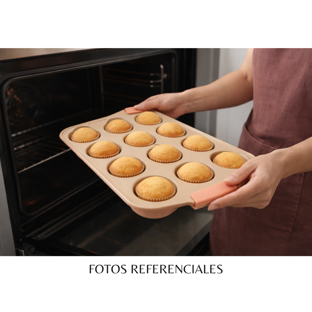 Es ideal para preparar muffins, cupcakes, mini tortas, budincitos y otras recetas dulces o saladas, siendo una herramienta práctica para la cocina del hogar.